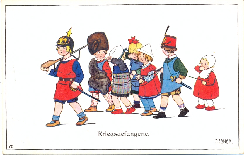 Kinder, 1. WK, „Kriegsgefangene“, sign. Pauli Ebner, um 1915, nicht beschriftet, nicht gelaufen, nur sehr kleine Altersspuren.