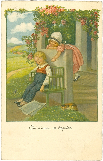 Kinder, schlafendes Kind, Zeitung, Katze, sign. Pauli Ebner, Verlag AGB Nr. 1034, nicht beschriftet, nicht gelaufen, einwandfreie Erhaltung.