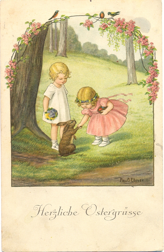 Ostern, Kinder mit Hase, sign. Pauli Ebner, Verlag Rökl Nr. 1324, nicht beschriftet, nicht gelaufen, leicht unsauber, sonst nur kleinere Altersspuren.