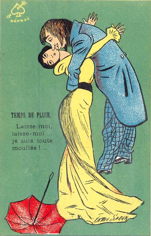 Mann, Frau, Regenschirm, sign. Xavier Sager, ca. 20er Jahre, nicht beschriftet, nicht gelaufen, sehr gute Erhaltung. Seltene Sager AK !