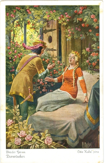 Märchen, Dornröschen, 20er Jahre, nicht beschriftet, nicht gelaufen, etwas eckbestossen, leichte Altersspuren.