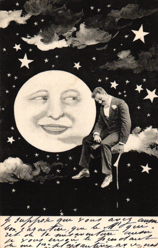 Mann im Mond, 1904 in Frankreich postalisch gelaufen, einwandfreie Erhaltung.