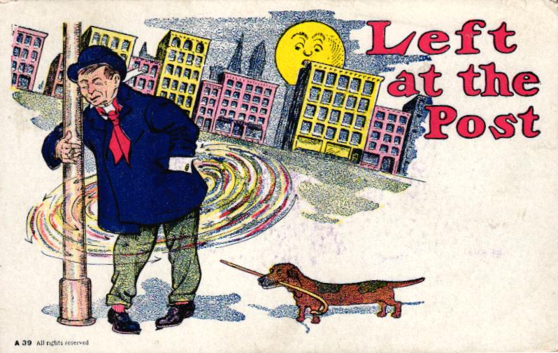 Mann mit Dackel, amerikanische Scherz-AK, 1906 postalisch gelaufen, nur sehr geringe Altersspuren.