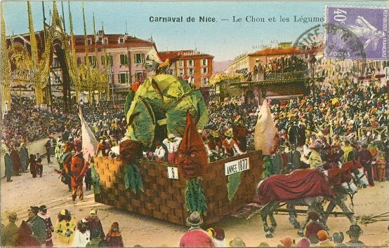 Karneval, Carneval de Nice, 1928 postalisch gelaufen, Briefmarke vorderseitig, nur sehr geringe Altersspuren.