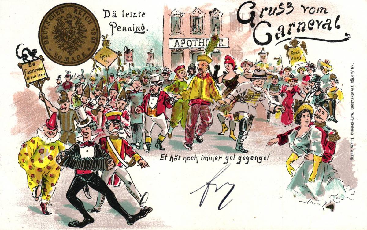 Köln, Carneval / Karneval, Farb-Litho, um 1900/05, nicht beschriftet, lediglich kurzes Namenskürzel vorderseitig, nicht gelaufen, einwandfreie Erhaltung.