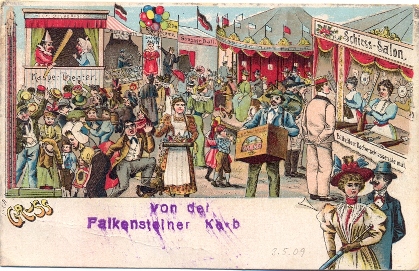 Falkenstein im Taunus, Kerb, Farb-Litho, 1909 von Falkenstein nach Frankfurt versandt, Bug unten links, sonst nur kleinere Altersspuren.