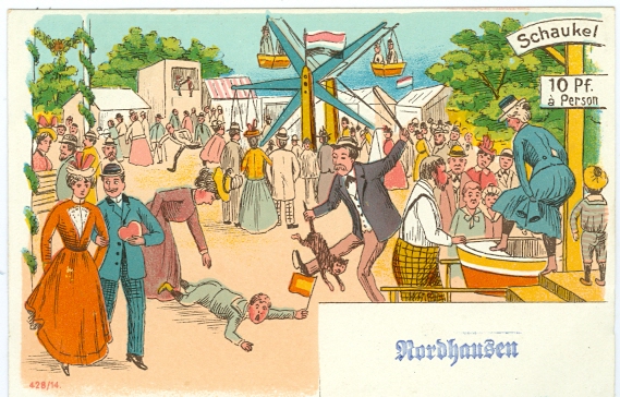 Jahrmarkt, Kirmes, Nordhausen, Farb-Litho, nicht beschriftet, nicht gelaufen, um 1910, sehr gute Erhaltung.
