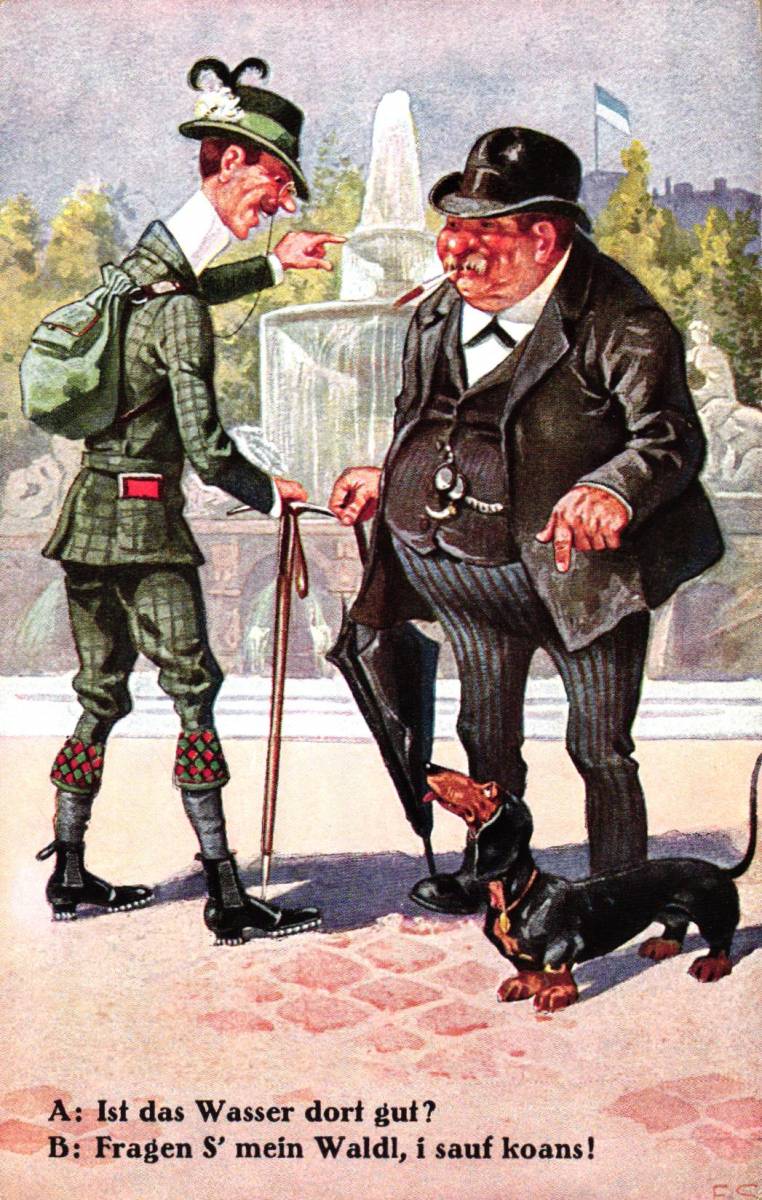 Männer mit Dackel, Scherz-AK, um 1910/20, nicht beschriftet, nicht gelaufen, gering eckbestossen, sonst ordentliche Erhaltung.