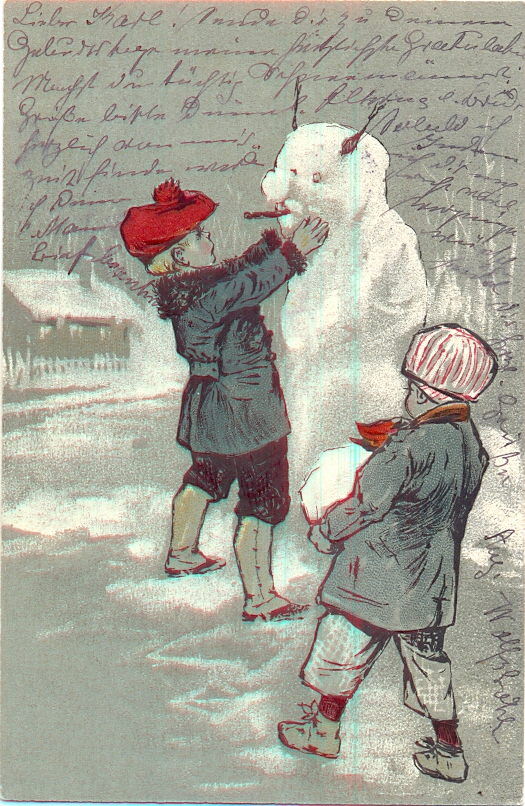 Kinder, Schneemann, Prägekarte, 1906 postalisch gelaufen, winzgst eckbestossen, sonst gute Erhaltung.