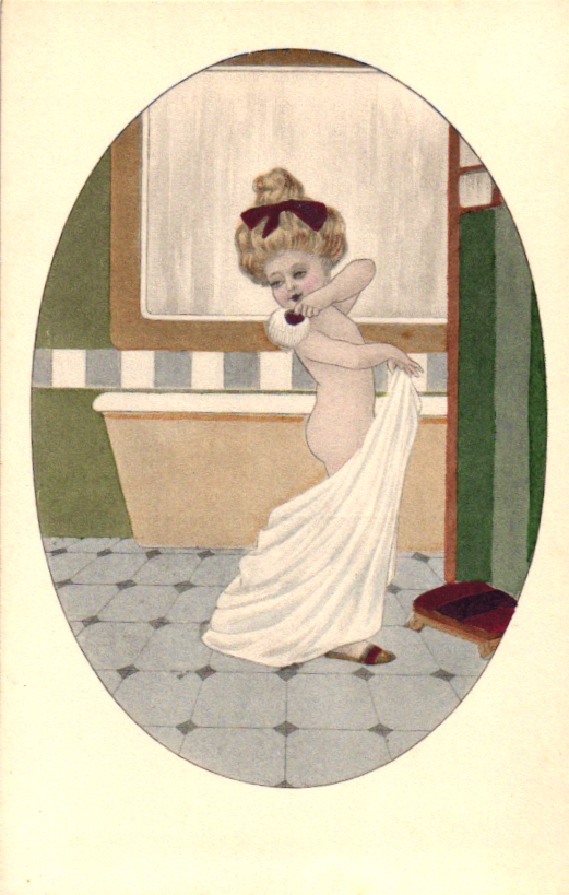 Mädchen im Bad, um 1910/20, nicht beschriftet, nicht gelaufen, einwandfreie Erhaltung.