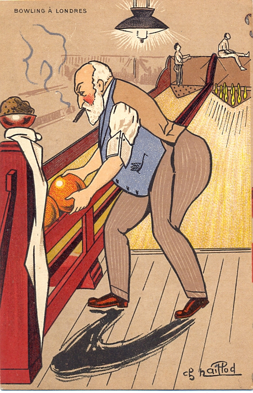 Bowling in Londeon, Künstlerkarte, um 1910/20, nicht beschriftet, nicht gelaufen, schöne Karte mit nur kleinen Altersspuren, rückseitig leicht unsauber.