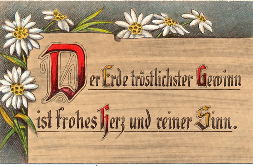 Spruchkarte mit Blumen, um 1910, rückseitig beschriftet, nicht postalisch gelaufen, gute Erhaltung.