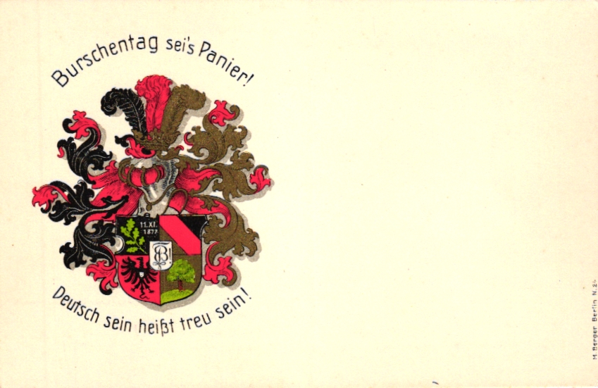 Studentika, „Burschentag sei`s Panier!“, Verlag Berger, Berlin Nr.24, nicht beschriftet, nicht gelaufen, einwandfreie Erhaltung.
