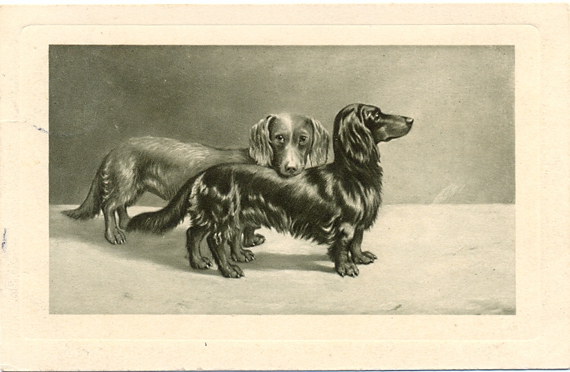Dackel, Künstlerkarte, 1910 postalisch gelaufen, nur kleinere Altersspuren.