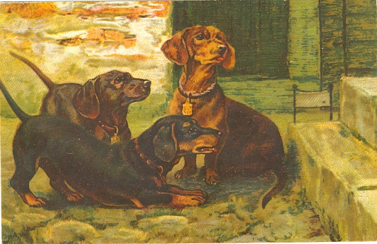 Dackel, Künstlerkarte, um 1910, rückseitig beschriftet, nicht postalisch gelaufen, gute Erhaltung.