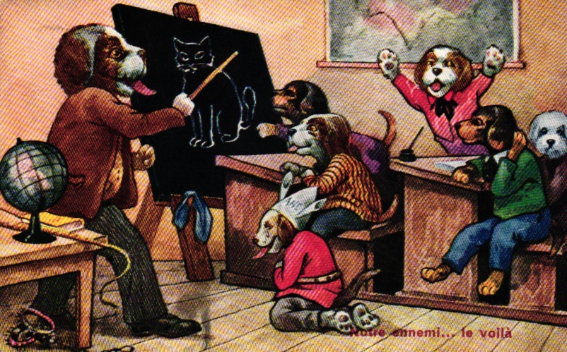Hunde, Hundeschule, Dackel, 1933 postalisch gelaufen, nur sehr kleine Altersspuren.