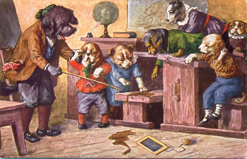 Hunde, Hundeschule, Dackel, um 1910, nicht beschriftet, nicht gelaufen, gute Erhaltung.