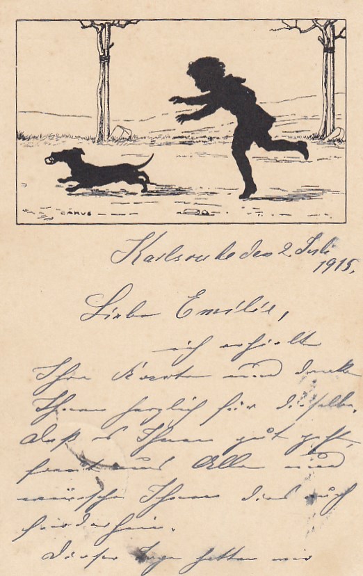 Kind mit Dackel, Scherenschnitt AK, 1915 postalisch gelaufen, nur geringe Altersspuren.