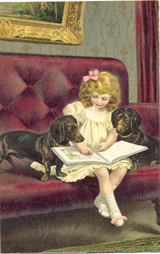 Mädchen mit Dackel, um 1910/20, nicht beschriftet, nicht gelaufen, besonders schöne Dackel-AK mit nur sehr kleinen Altersspuren.