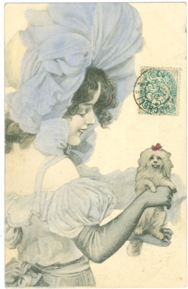 Mädchen mit Hund, Jugendstil AK, 1903 postalisch gelaufen, schönes Motiv, nur geringe Altersspuren.