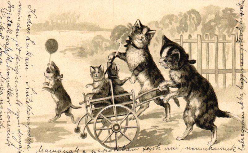 Katze, Katzenfamilie, Prägekarte, um 1900/05, beschriftet, nicht postalisch gelaufen, einwandfreie Erhaltung.
