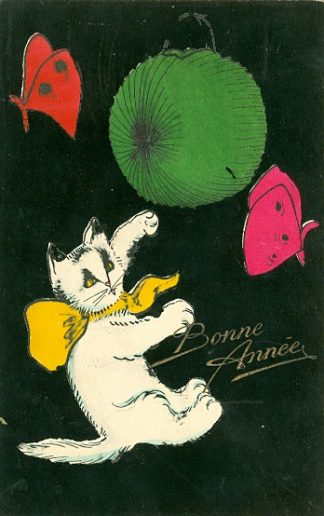 Katzen, Rosen, Farb-Litho, 1901 postalisch gelaufen, leichte Altersspuren, minimal fleckig.