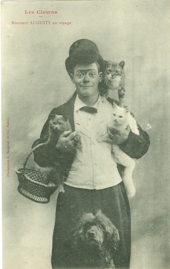 Theater, Zirkus, Variete, Clown, August mit Katzen, um 1910 postalisch gelaufen, minimal eckbestossen, sonst ordentliche Erhaltung, sehr ausgefallenes Motiv !
