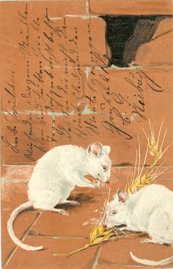 Maus, Mäuse, Gerste, Prägekarte, 1903