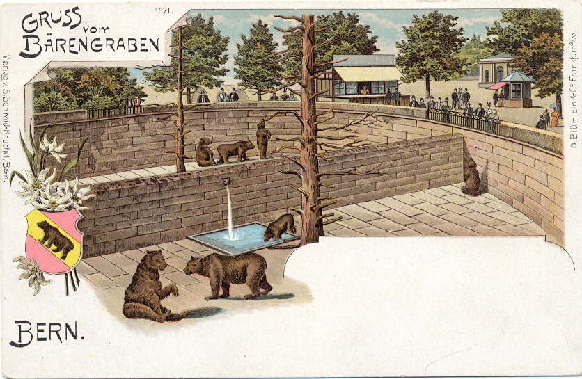 Bern, Zoologischer Garten, Bärengraben, Farb-Litho, um 1900/10, nicht beschriftet, nicht gelaufen, minimal eckrund, sonst gute Erhaltung.