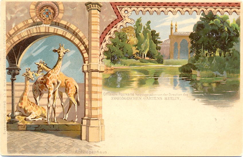 Zoo Berlin, Giraffen, Farb-Litho, 1900