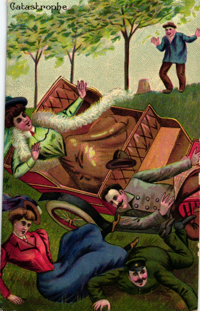 Auto, Automobil, Unfall, um 1905/10, nicht beschriftet, nicht gelaufen, gering eckbestossen, sonst einwandfreie Erhaltung.