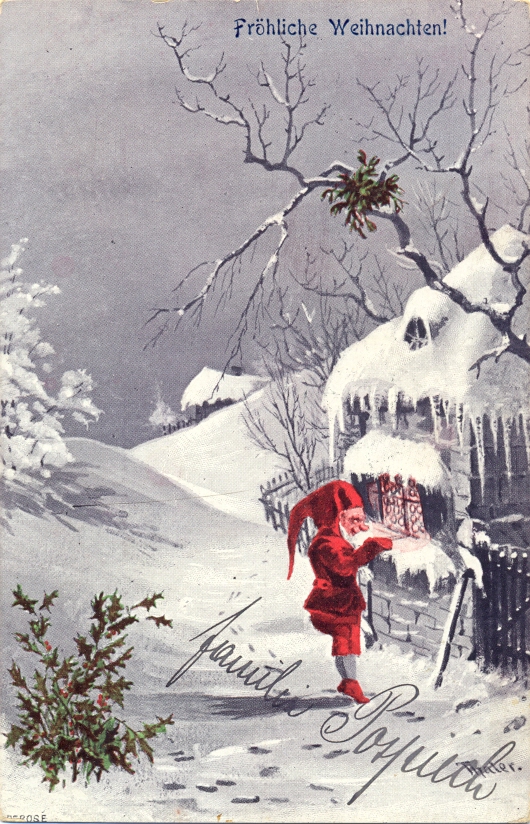 Weihnachten, Zwerg klopft an ein Fenster, 1904 postalisch gelaufen, BKW Nr. 2031-1, nur sehr kleine Altersspuren.